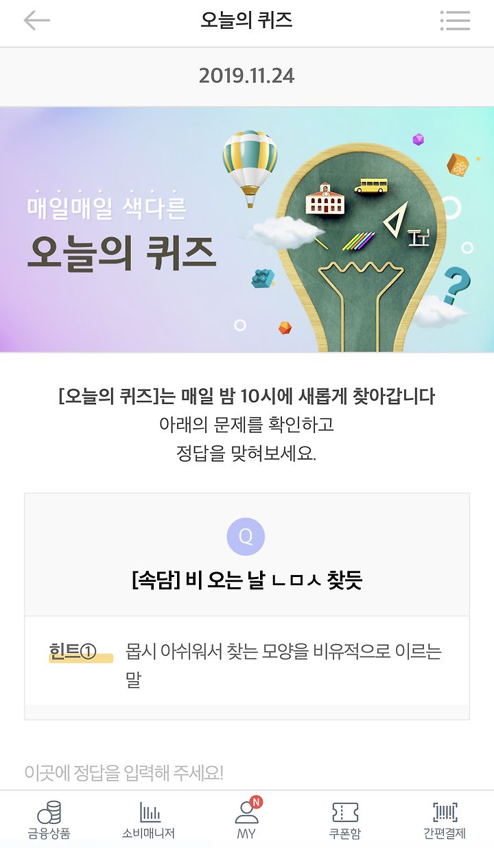 오늘의퀴즈 푸시고 일반상식퀴즈도24일까지니
