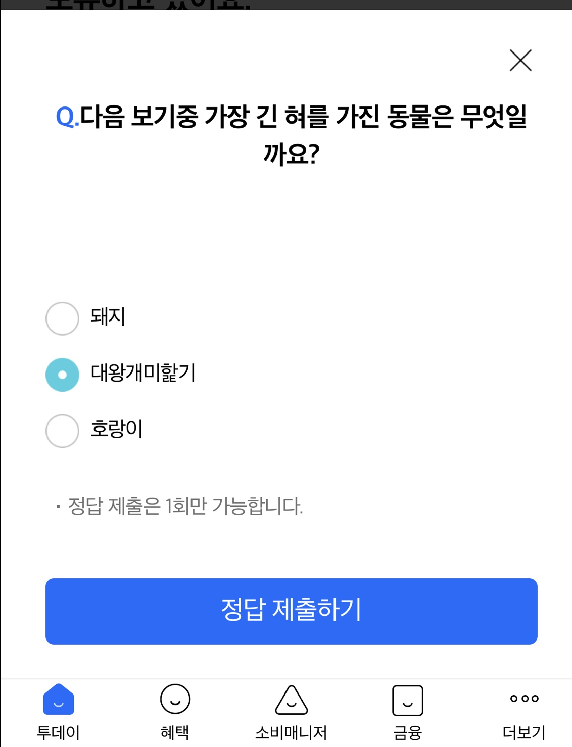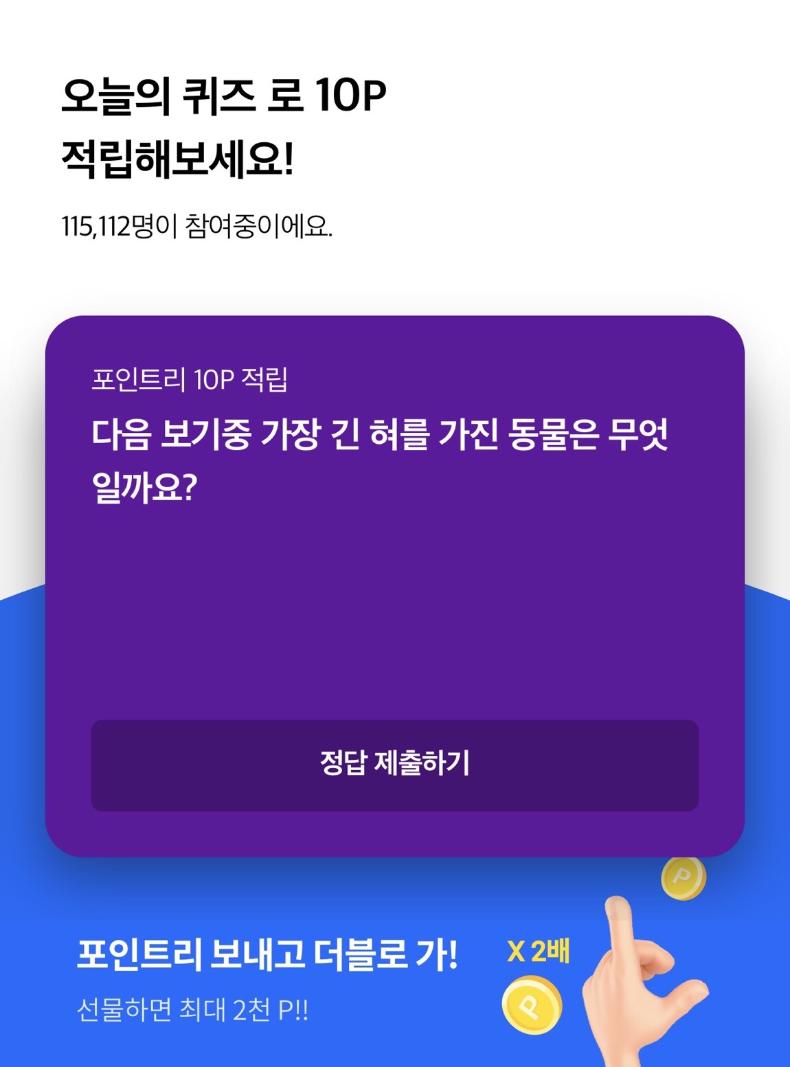 매일 올라오는 오늘의 퀴즈 정답을 맞추시면