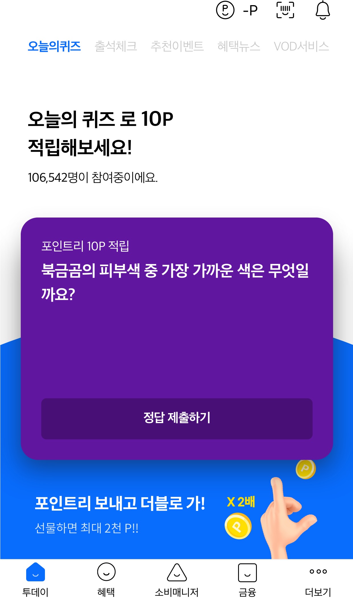 오늘의퀴즈 정답 맞추시고 포인트받으세요.