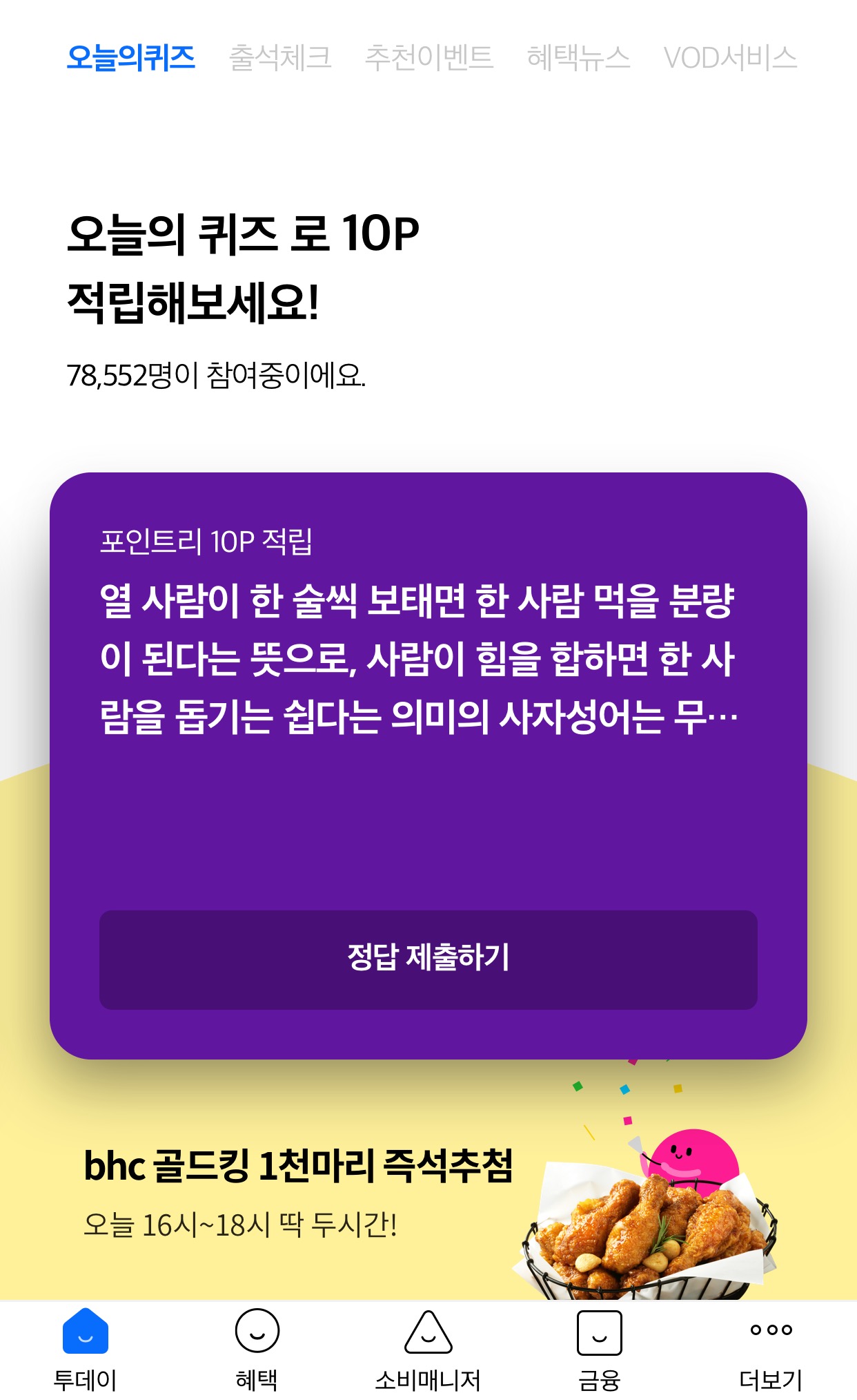 국민은행 리브메이트 오늘의퀴즈 10월16일 정답